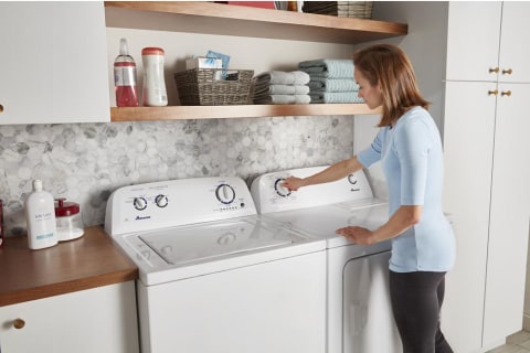 This 6.5 cu. ft. Amana Top Load Electric Dryer can help prevent damage from overdrying with Automatic Dryness Control. Plus. you get 11 Dry Cycles and the Wrinkle Prevent Option to help keep creases and crinkles from settling in.