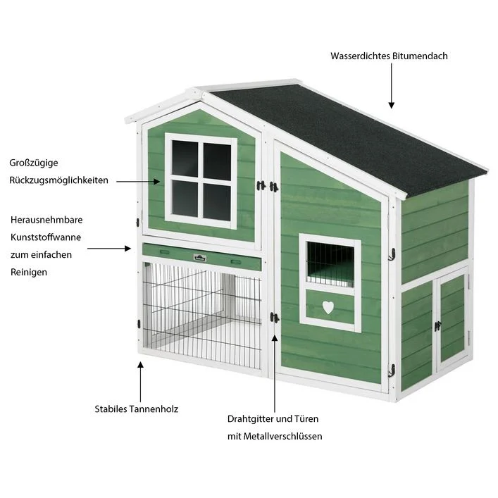 Hasenstall aus Tannenholz und wasserdichtem Bitumendach