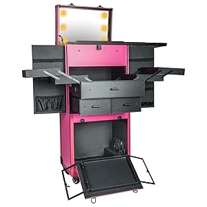 • Makeup Artists Multifunction lighted Cosmetics Rolling Case with Fan