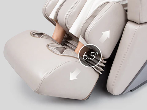 The footrest can be extended up to 6.5' to ensure the optimal leg length for your height. The foot component will extend outwards and then retract inwards. Simply apply pressure with your feet to be at the desired position.