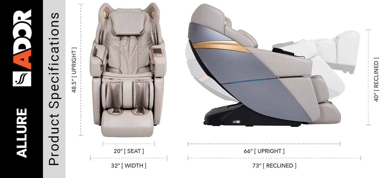 Ador Allure is a 3D adjustable massage chair with an advanced SL-track rolling system.