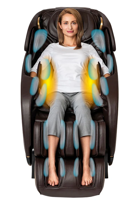 Using the ergonomic design of the chairs 51.25 inch SL track the chair delivers multiple massage techniques from your upper hamstring to your neck and shoulder.