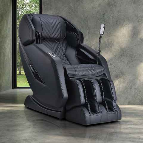 The Kawa is JPMedics newest chair. incorporating refinements and features not normally found on a Japanese manufactured chair. The 3D robotic engine moves along an extra-long “L-Track” and performs a humanlike massage providing a visceral experience from the neck to the glutes. The Kawa features air cell technology to position the body for a better massage and most importantly for effective stretching of the back. shoulders. arms. and legs. The foot rollers are a combination of pressure point massage and compression. Ten expertly choreographed massage programs or a personalized custom massage are at your fingertips using our large touchscreen remote.