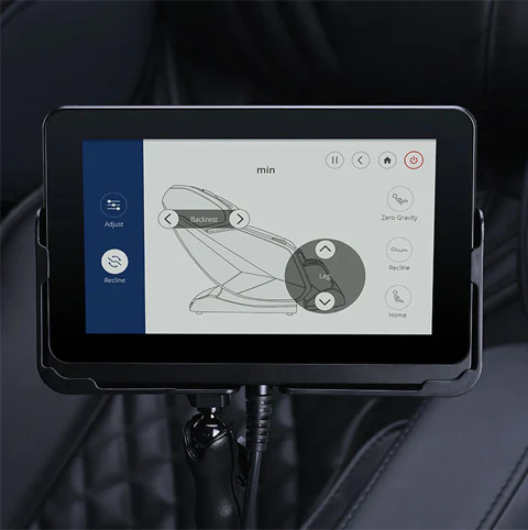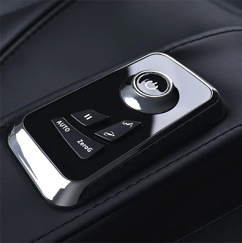 A controller sits in the right side of the armrest to give you quick and convenient access to power on/off. auto-programs. recline. and zero gravity.