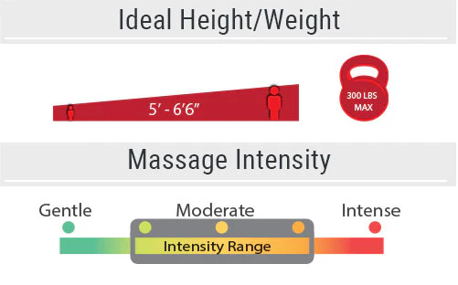 Zero gravity positioning elevates your knees above your heart. which allows the spine to decompress. provides a sense of weightlessness. and maximizes the effects of the massage rollers..